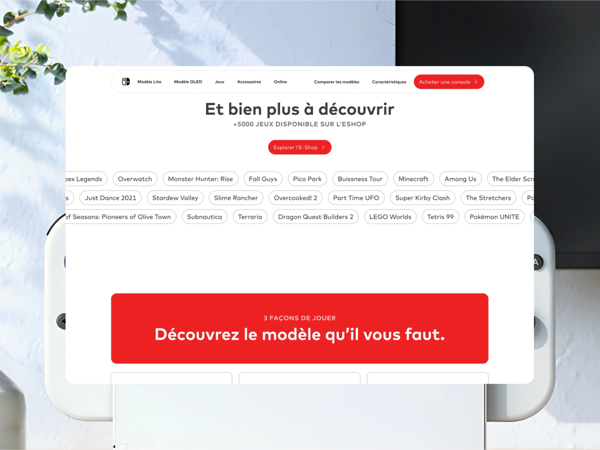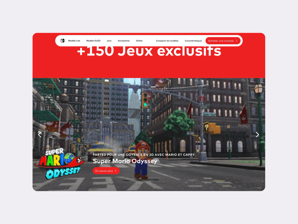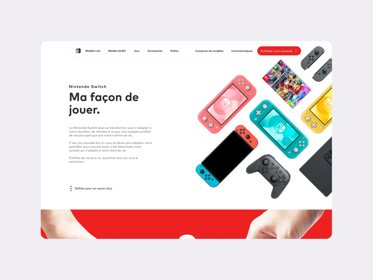 Nintendo is one of the giants of the video game world. The latest console to be produced by the Japanese firm, the 'Nintendo Switch' is a nomadic device that can be modulated according to the way you play.\n\nWhen redesigning its web page, I wanted to take up the minimal aspect of the console's design and visual identity, and challenge my skills by keeping an existing base and identity while making the page more elegant and modern.\n\nThis mockup was one of the first that I made on my early years on Figma, which I later completed in 2021.